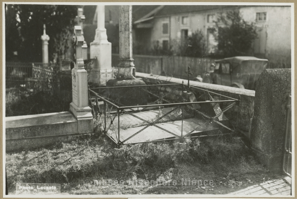 Tombes de Nicéphore Niépce et de sa femme, à saint-Loup-de-Varennes, avant et après leur remise en état, en mai 1933