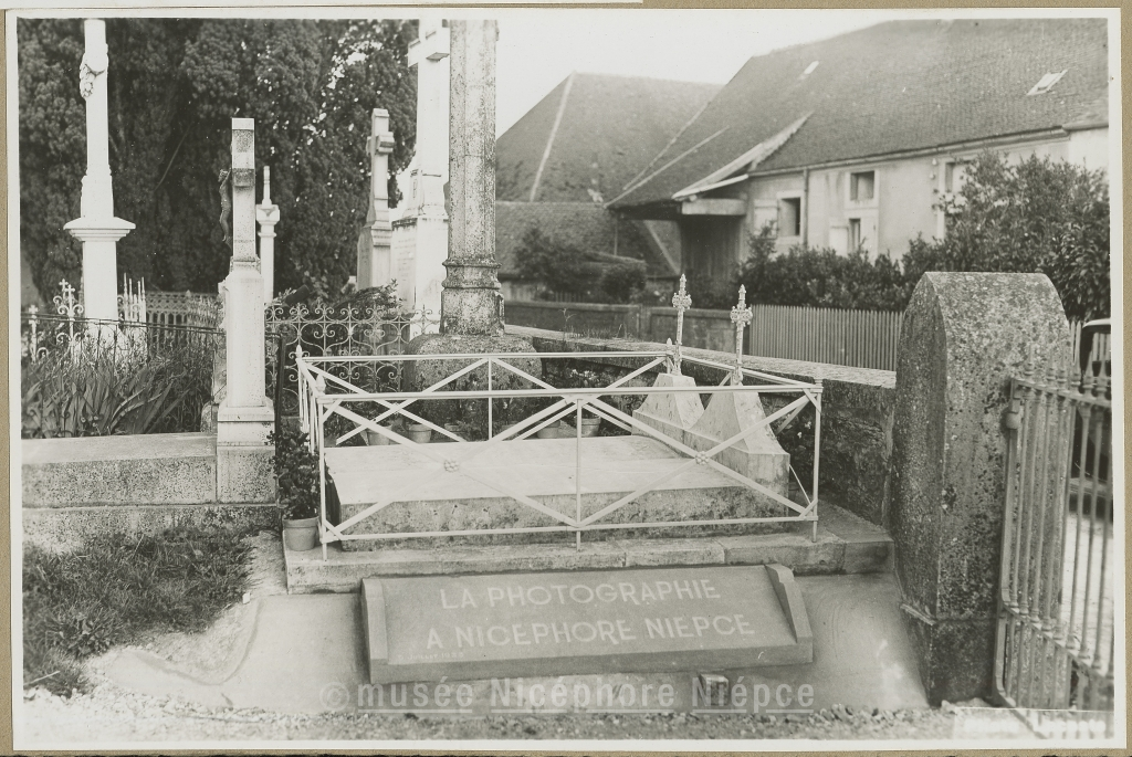 Tombes de Nicéphore Niépce et de sa femme, à saint-Loup-de-Varennes, avant et après leur remise en état, en mai 1933