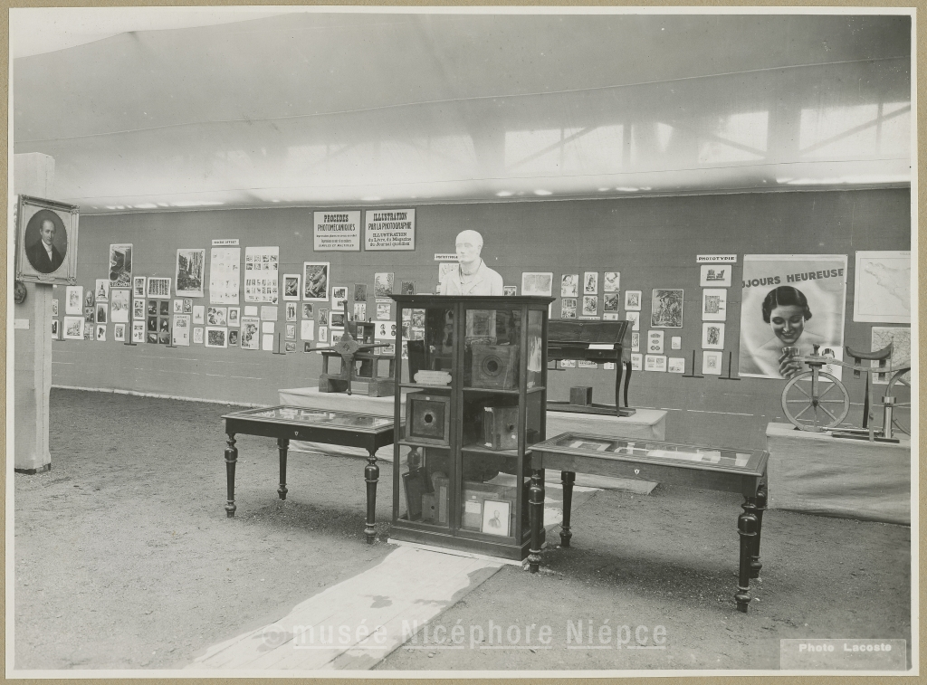 Exposition photographique Niépce Les appareils ; la presse ; le secrétaire ; la bicyclette de l'inventeur