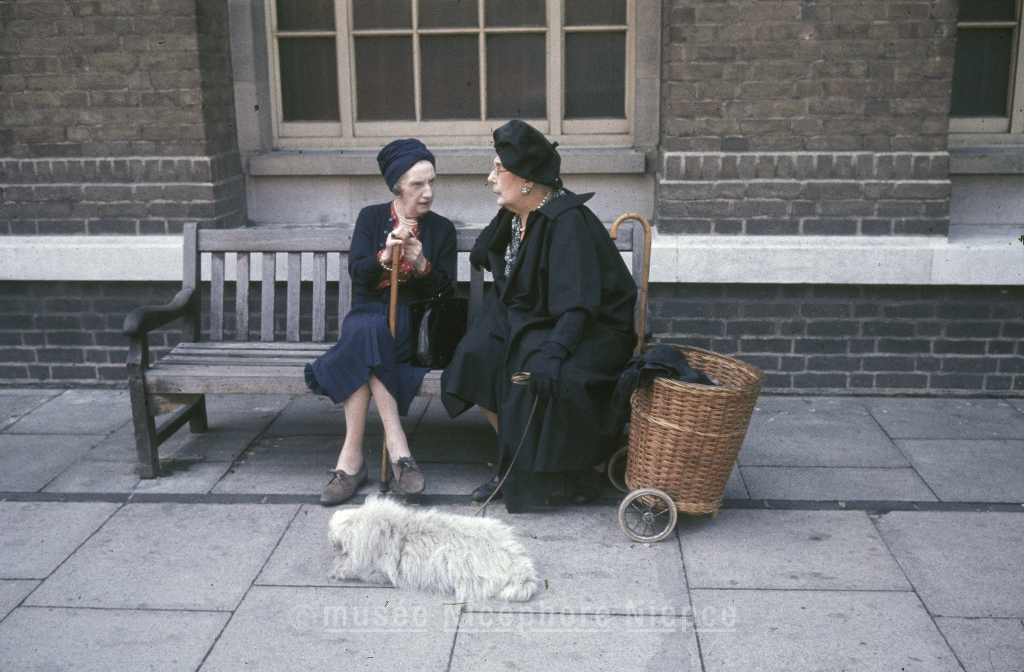 Vieilles femmes discutant sur un banc