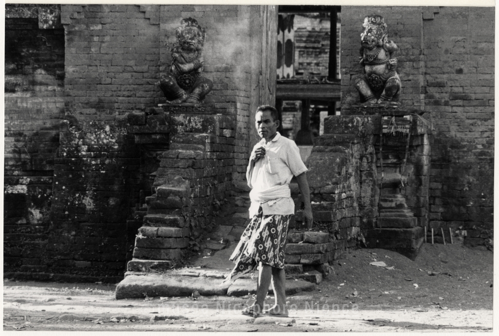 Personnage asiatique devant un temple