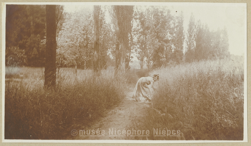Femme cueillant des fleurs