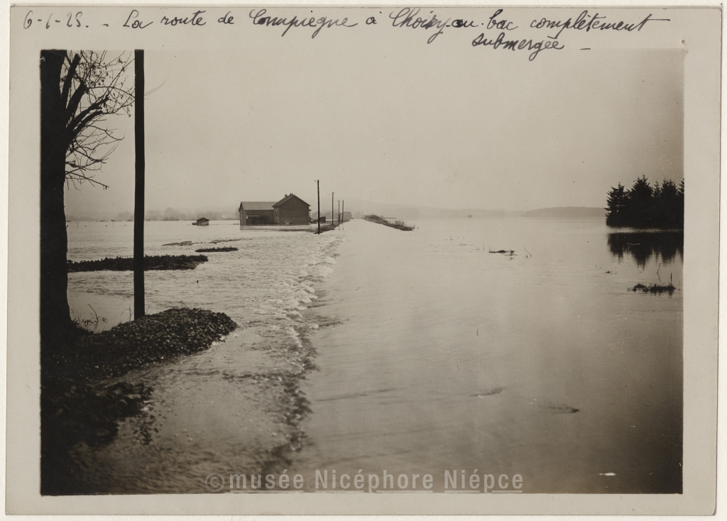 Les inondations dans l'Oise / La route de Compiègne à Choisy-au-Bac / complètement submergée