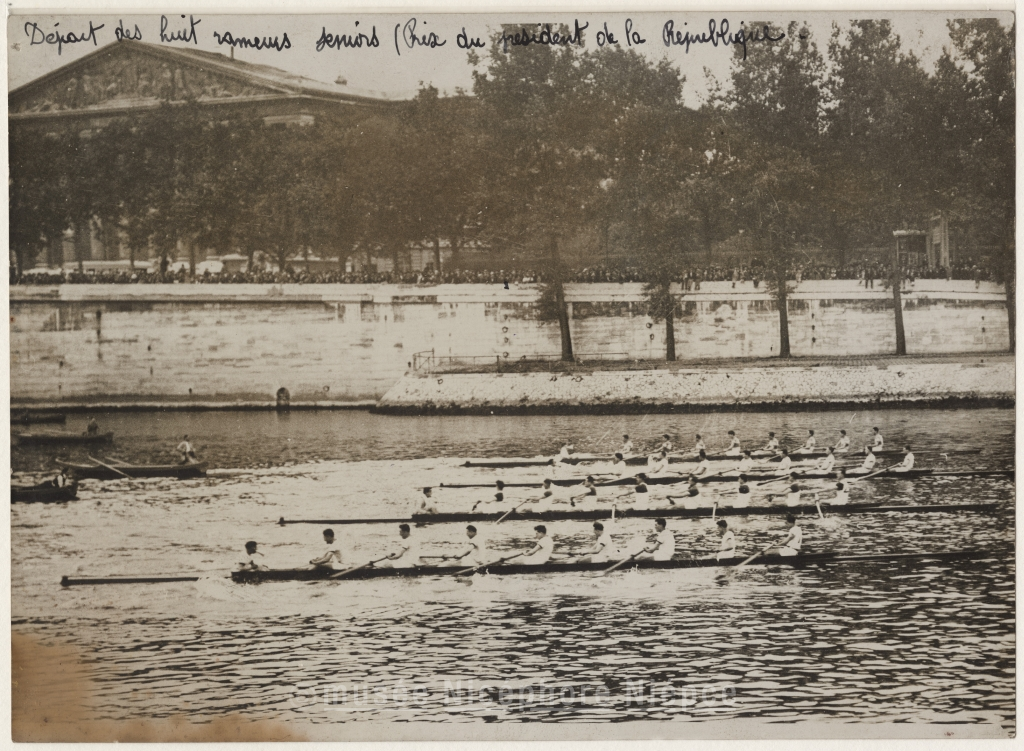 Grand Prix de Paris d'aviron. Départ / du huit rameurs séniors (Prix du président de la / République)