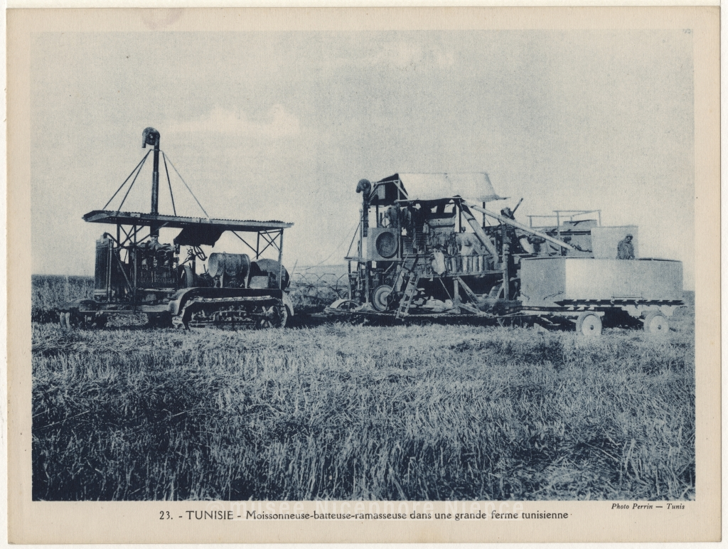 23. TUNISIE. Moissonneuse-batteuse-ramasseuse dans une grande ferme tunisienne