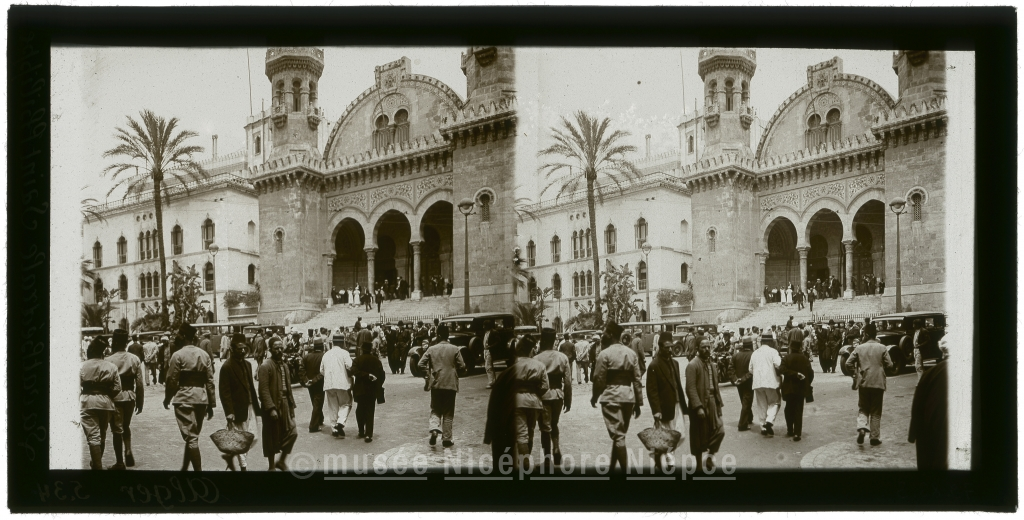 vue d'architecture - foule - place - entrée - cathédrale - Alger