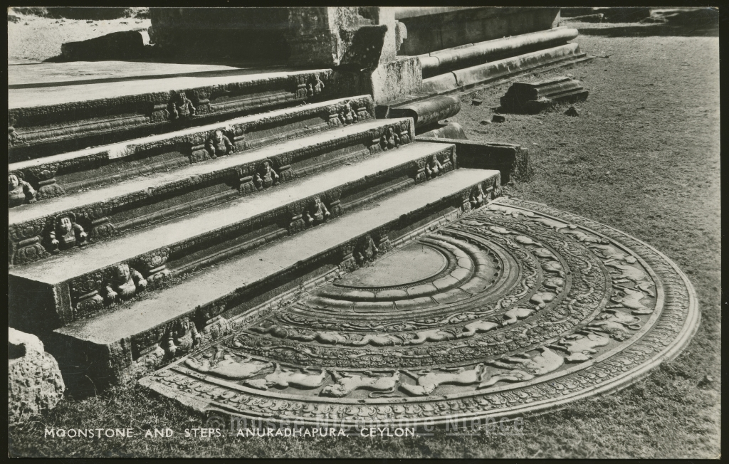Moonstone and steps. Anuradhapura. Ceylon
