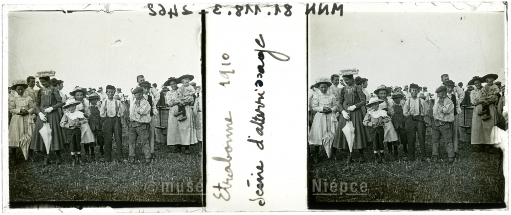 en pied - foule - enfant - chapeau - femme - de face - groupe de figures - ombrelle - Claudius GIVAUDAN