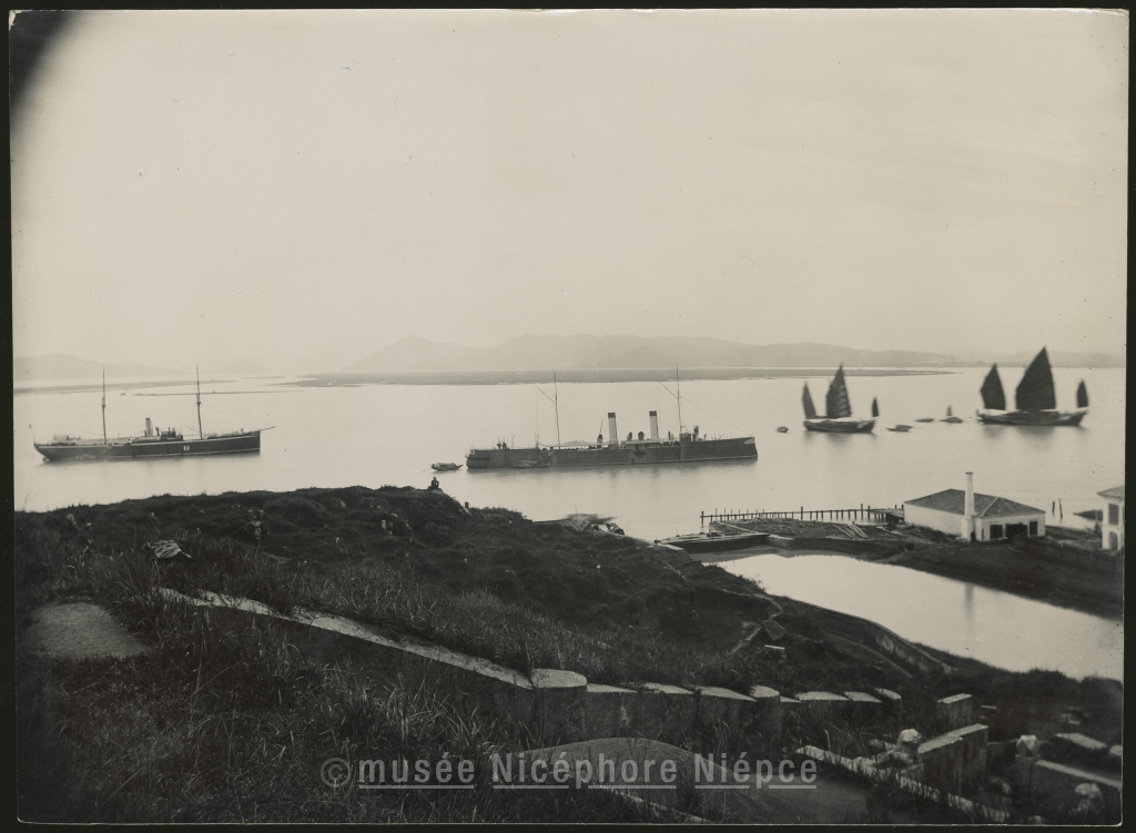 La rivière devant l'Arsenal : au milieu / le croiseur Kien-Ngam (récemment construit à l'Arsenal)