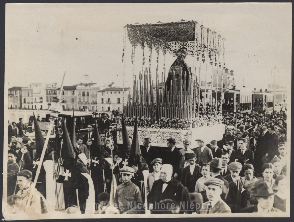 La semaine sainte à Séville. La Vierge de Patrocinio se dirigeant vers la Cathédrale, passe sur le pont de Triana)