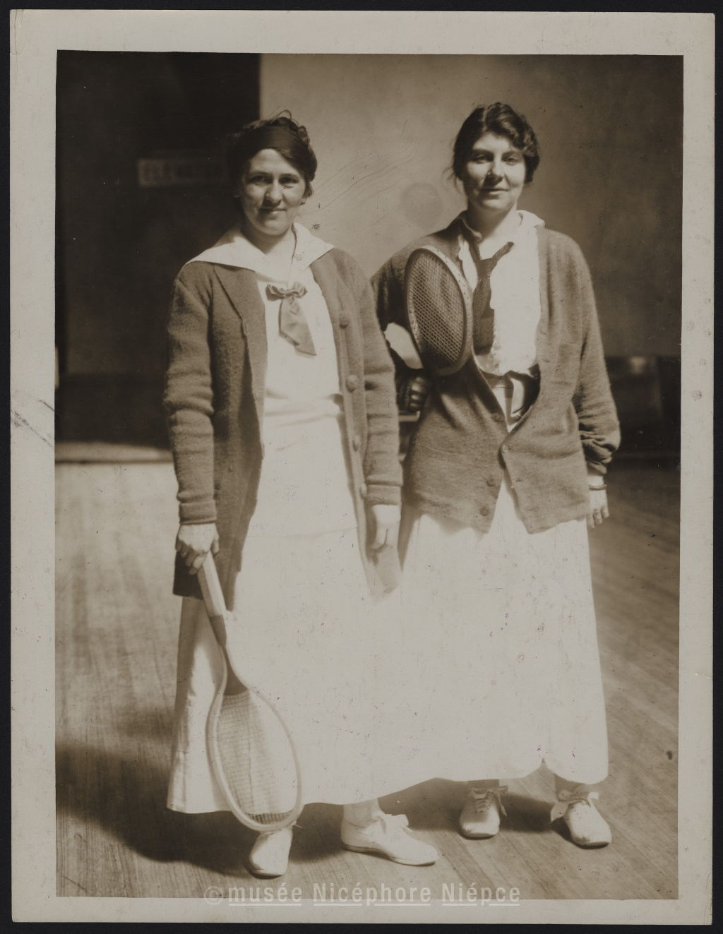 Women's national indoor Championship lawn Tennis tournament at the seventh regiment armory, New-York City / Miss Marie Wagner, and Mrs Theodore Cassebfer, probable winners of the doubles
