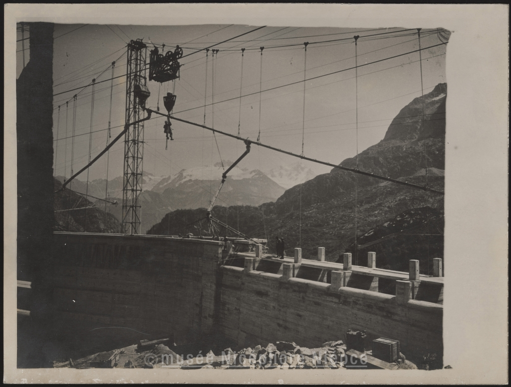 Chantier de construction d'un barrage dans les Alpes