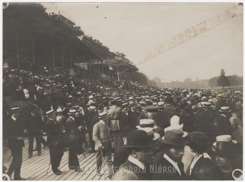Foule massée dans un stade (?)