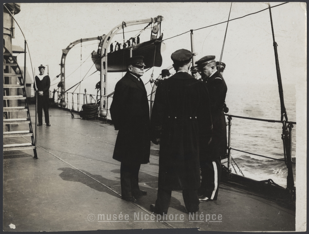 M. Delcassé et l'Amiral à bord de La Gloire sur les lieux de l'accident
