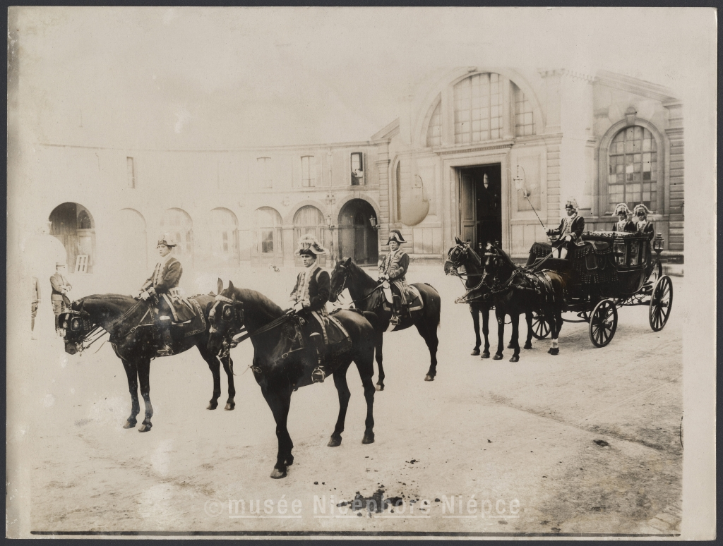 scène - cour - cheval - uniforme - roi - carrosse - cocher - chevalier - Anonyme - CHUSSEAU-FLAVIENS