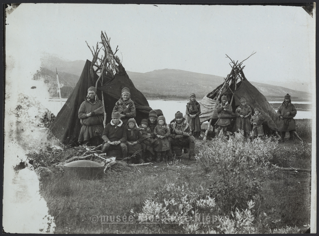 portrait collectif - costume traditionnel - en pose - tente - famille - ethnographie - Laponie - Anonyme - CHUSSEAU-FLAVIENS
