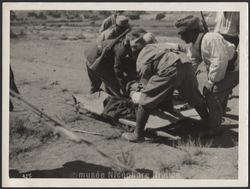 scène - soldat - blessé - civière - Maroc - guerre coloniale - CHUSSEAU-FLAVIENS - RATEL