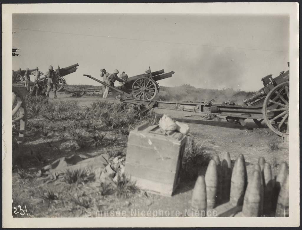 Au Maroc, scènes de la guerre - Mise en batterie d'un 155 court / dans la région de Kiffane