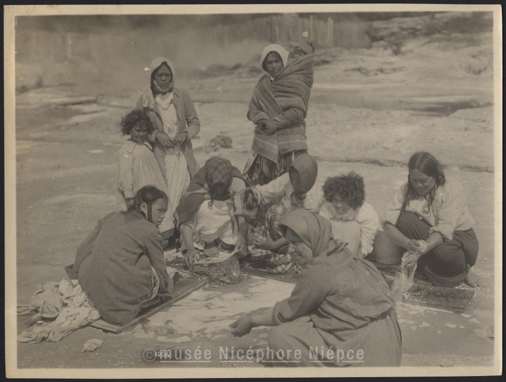 Maoris washing in a hot pool / Whakawarwa North Island, N.Z.