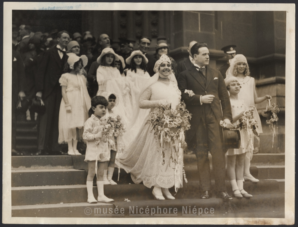 Poti del Monte au bras de son mari sortant de la cathédrale à Adélaïde