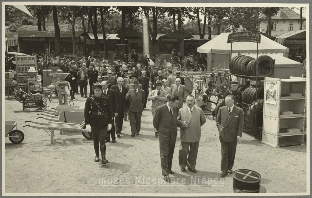 Inauguration de la XIXè Foire-Exposition par le Préfet Lambert, accompagné de Mr Nouelle, maire et de Mr Borgeot, Prt du Conseil Gl 21 Juin 1953