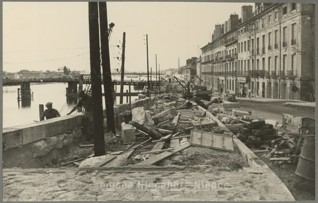 Travaux aux abords du pont Saint-Laurent, rive droite au Quai des Messageries 27 Août 1953