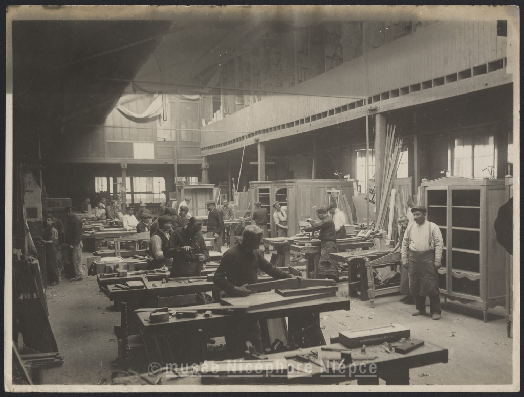 Une industrie bien française, la fabrication / du meuble , vue d'un atelier de menuiserie