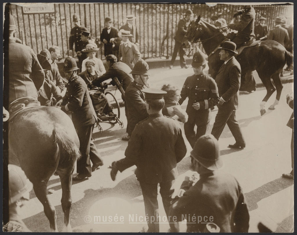 SUFFRAGETTES ATTACK ON BUCKINGHAM PALACE. / The scene of the melee on Constituion HiL.L