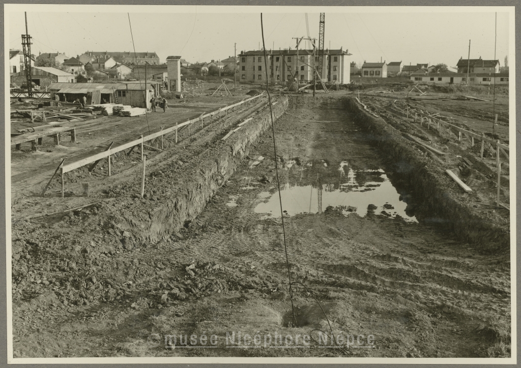 Quartier "Aubépin-Tuilerie" Fouilles des fondations du 2ème immeuble 24 avril 1954