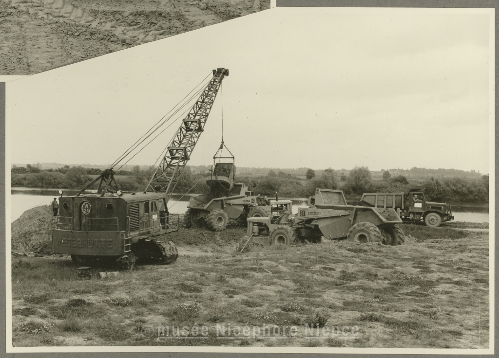 Travaux de déviation de la route de Crissey (D5) par le sud du quartier de St Jean des Vignes 25 Mai 1954