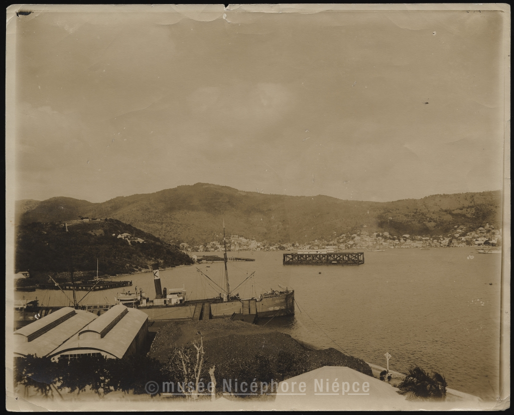 St Thomas (Antilles) / La ville, au fond de la rade, étagée sur 3 collines.