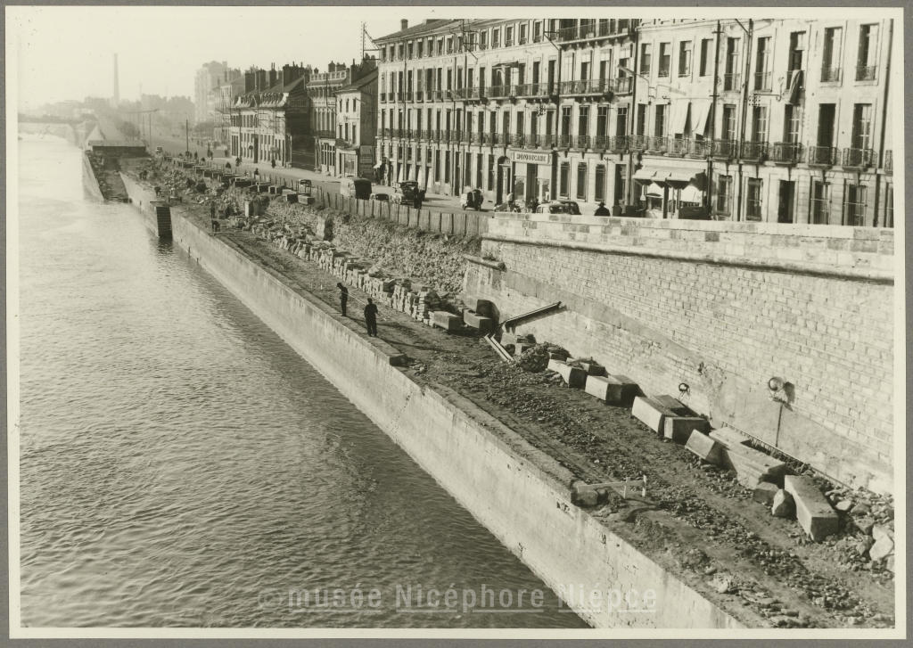Travaux d'aménagement du Quai des Messageries, vers la fin du mois de Décembre 1954