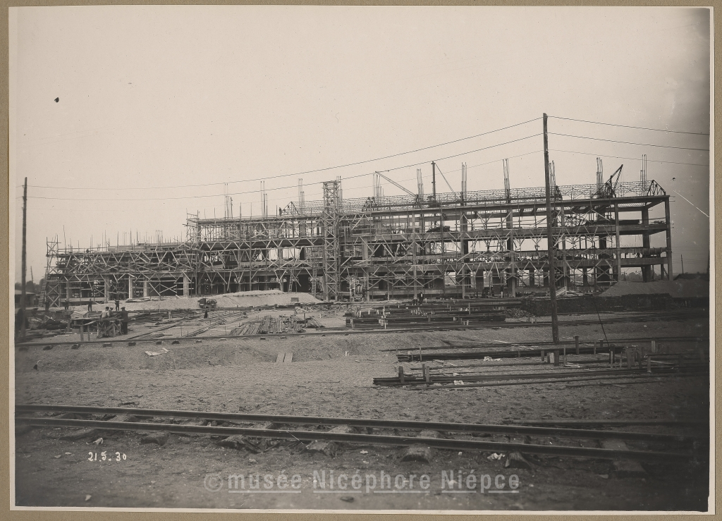 Vues des travaux de la Centrale thermique, au 21 mai 1930.-Petites inondations de mai 1930, avec la digue de la route endommagée. (cette digue fut édifiée en 1929 par la Sté "Formo-Centre")