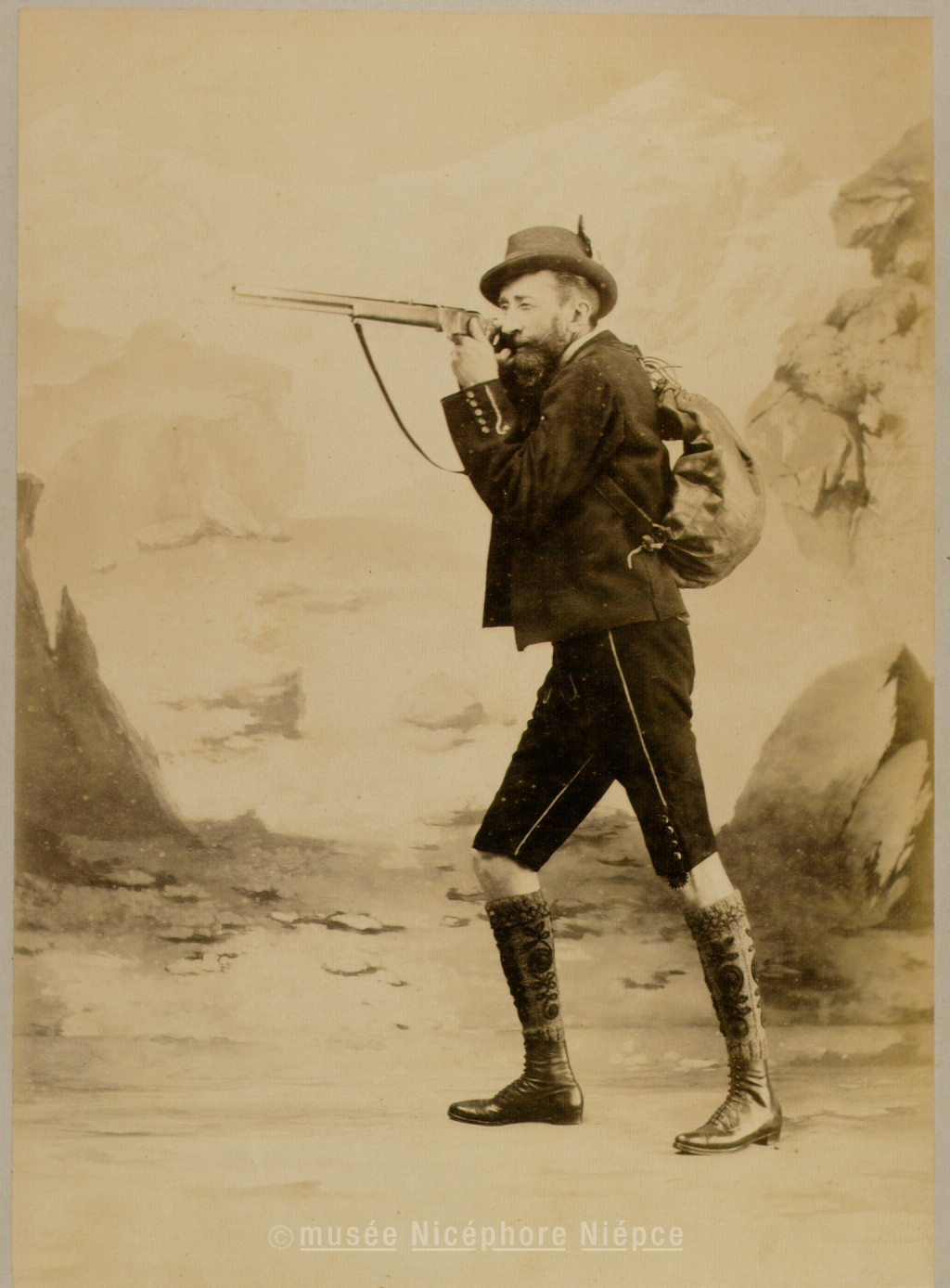 Benoît de Tyskiewicz en costume tyrolien imitant un chasseur
