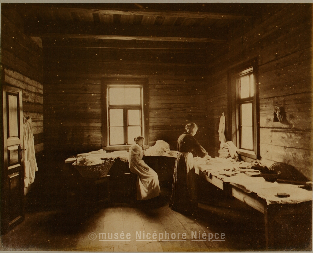 scène - femme - vue d'intérieur - linge - le travail - repassage - République de Lituanie - Benoît de Tyskiewicz