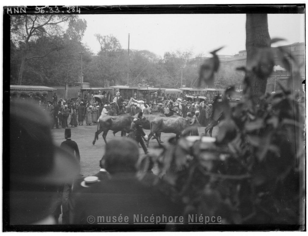 Egypte, funérailles d'un prince, les buffles qui vont être égorgés sur la tombe