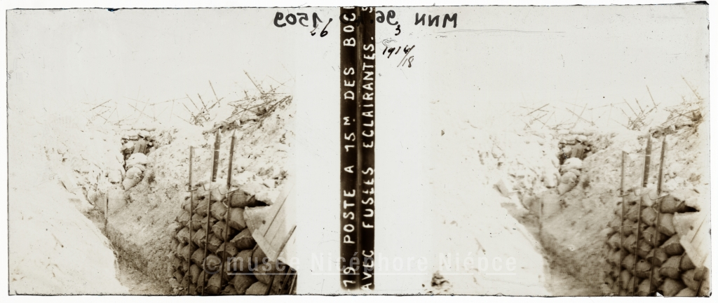 POSTE A 15 M DES BOC[HES] / AVEC FUSÉES ÉCLAIRANTES / 1914/18