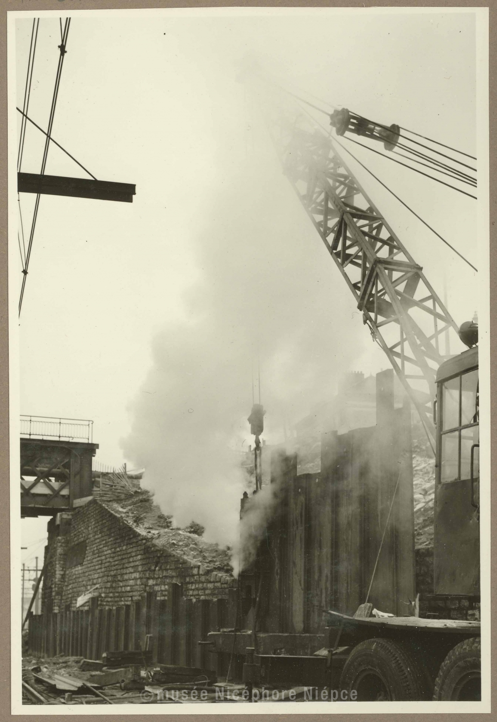 Pour arrêter le glissement des terres, il est procédé à la mise en place de palplanches 29 Novembre 1955