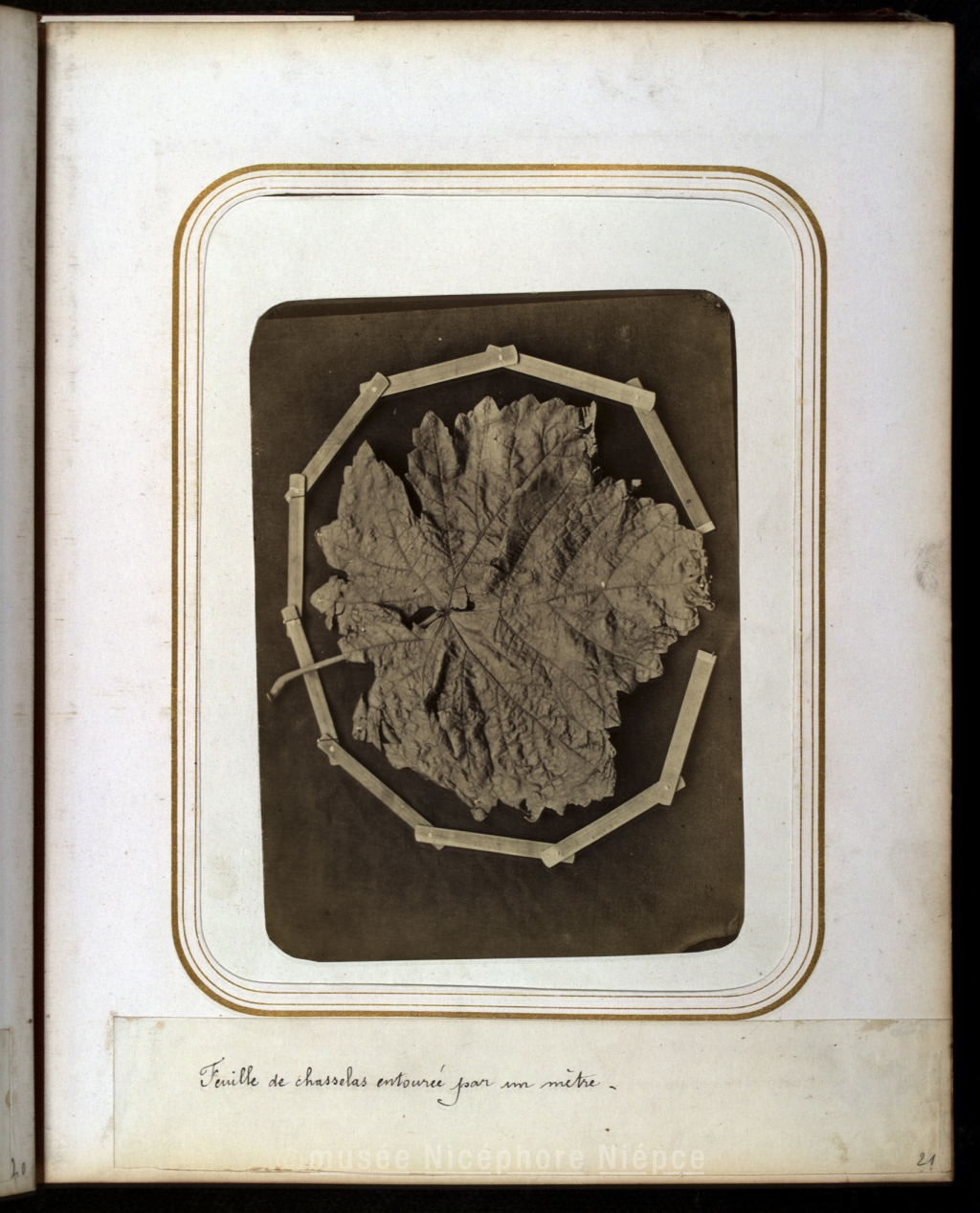 Feuille de chasselas entouré par un mètre