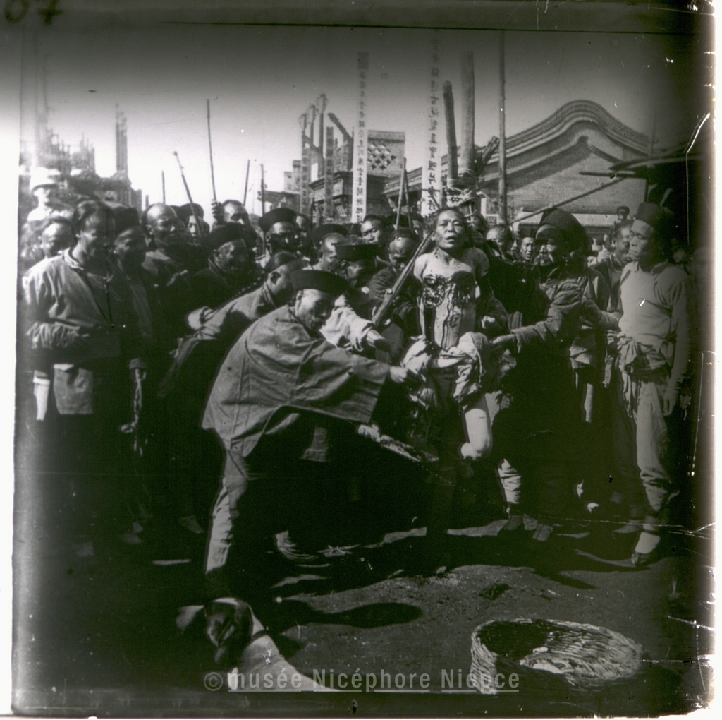 scène - foule - homme - pancarte - religieux - vannerie - Pékin - bourreau - lingchi - lapidation - pilori