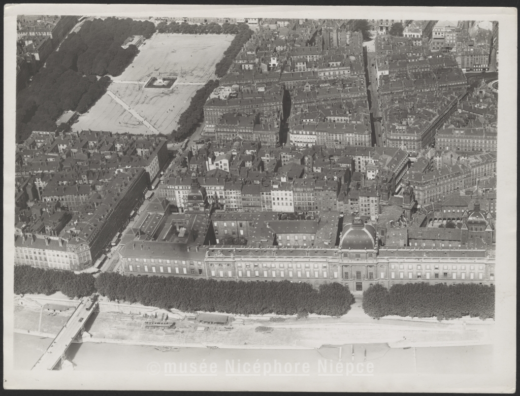 Hôtel Dieu et Place Bellecour à Lyon, vus d'avion