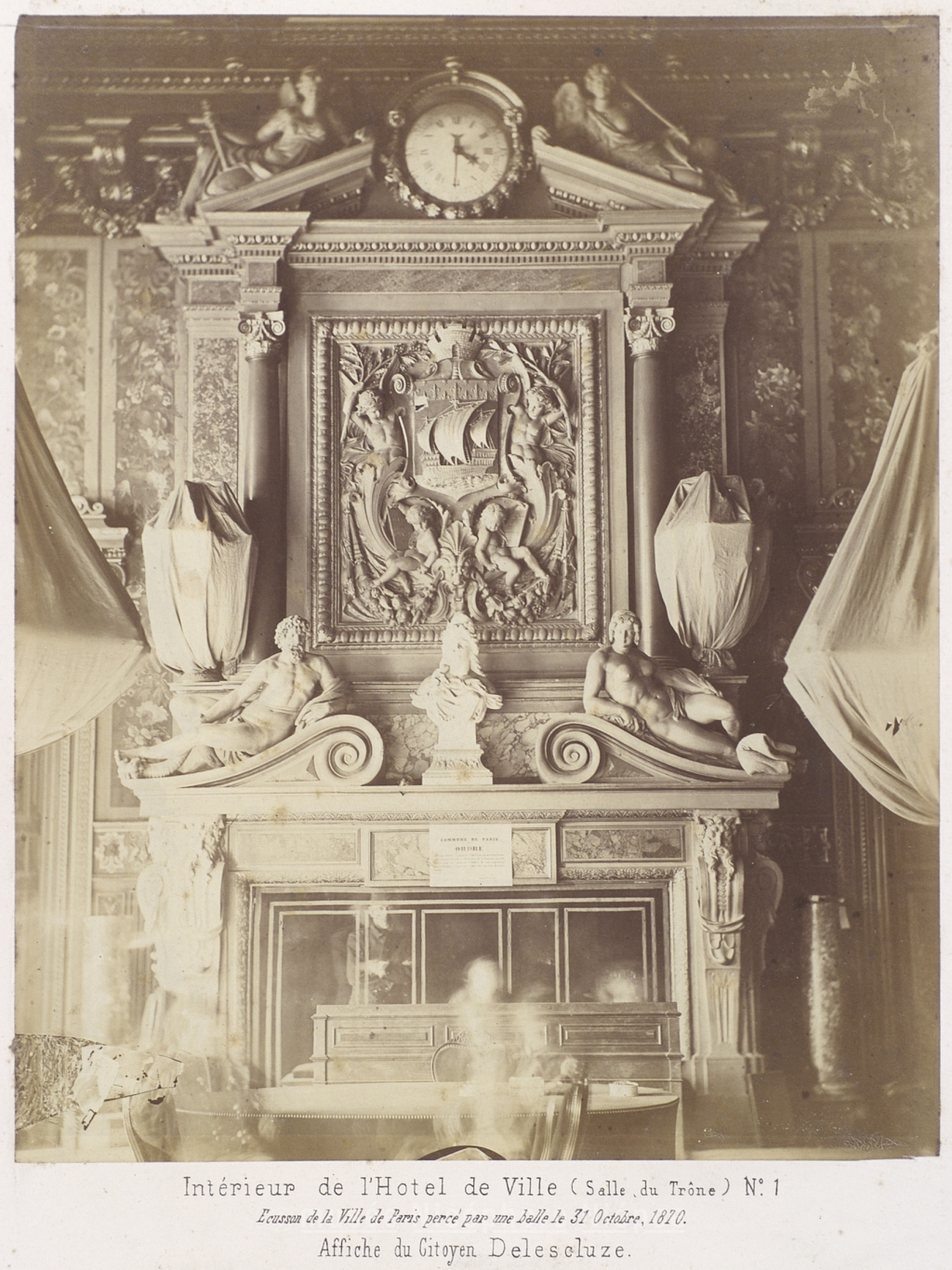 Intérieur de l'Hotel de Ville (Salle du Trône) N°1 / Ecusson de la Ville de Paris percé par une balle le 31 Octobre, 1870 / Affiche du Citoyen Delescluze