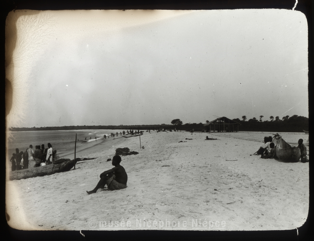 scène - homme - barque - enfant - maison - sable - plage - mer - AUDEMA J.