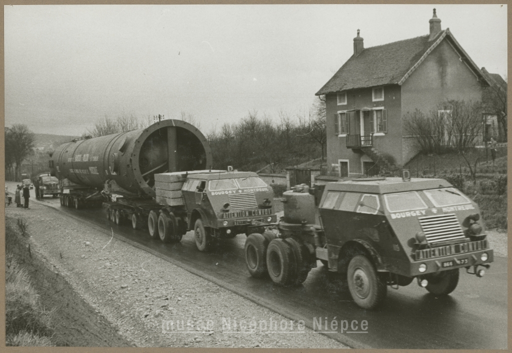 Le mardi 12 Février 1957, passage à Ladoix (6 km de Beaune) du "mille pattes atomique" (récupérateur d'énergie) pour la pile nucléaire de Marcoule... Le même jour, à la nuit - à 18h30 - le convoi arrivait à Chalon, d'où, après avoir stationné Quai Gambetta, il repartait le lendemain matin