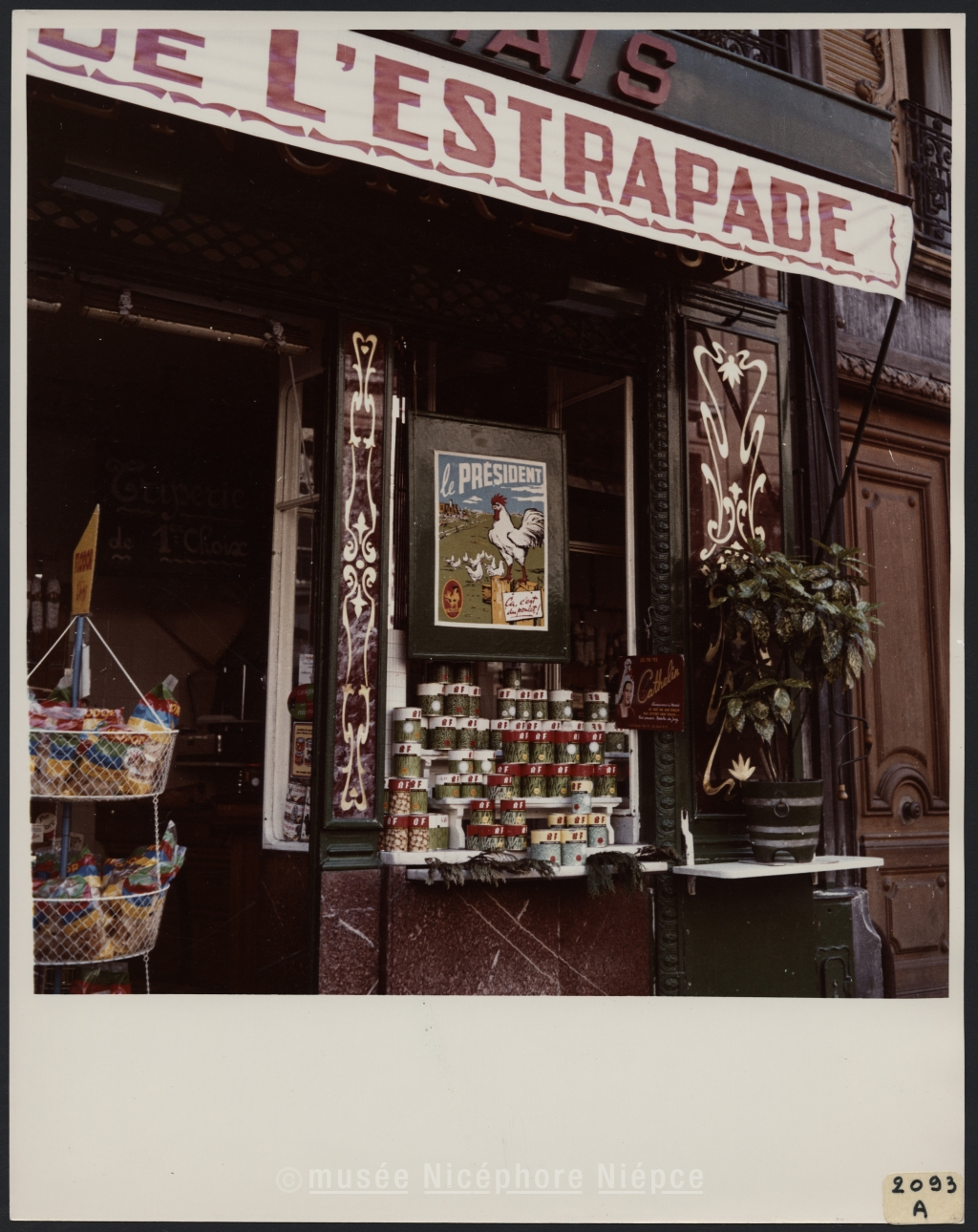 Vitrine d'une épicerie rue de l'Estrapade à Paris
