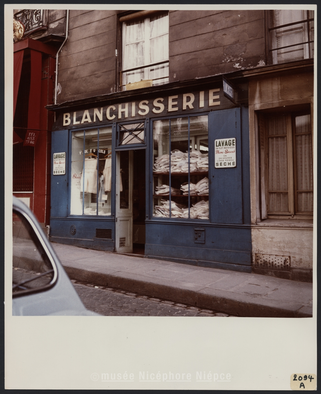 Vitrine d'une blanchisserie, rue Hermel à Paris