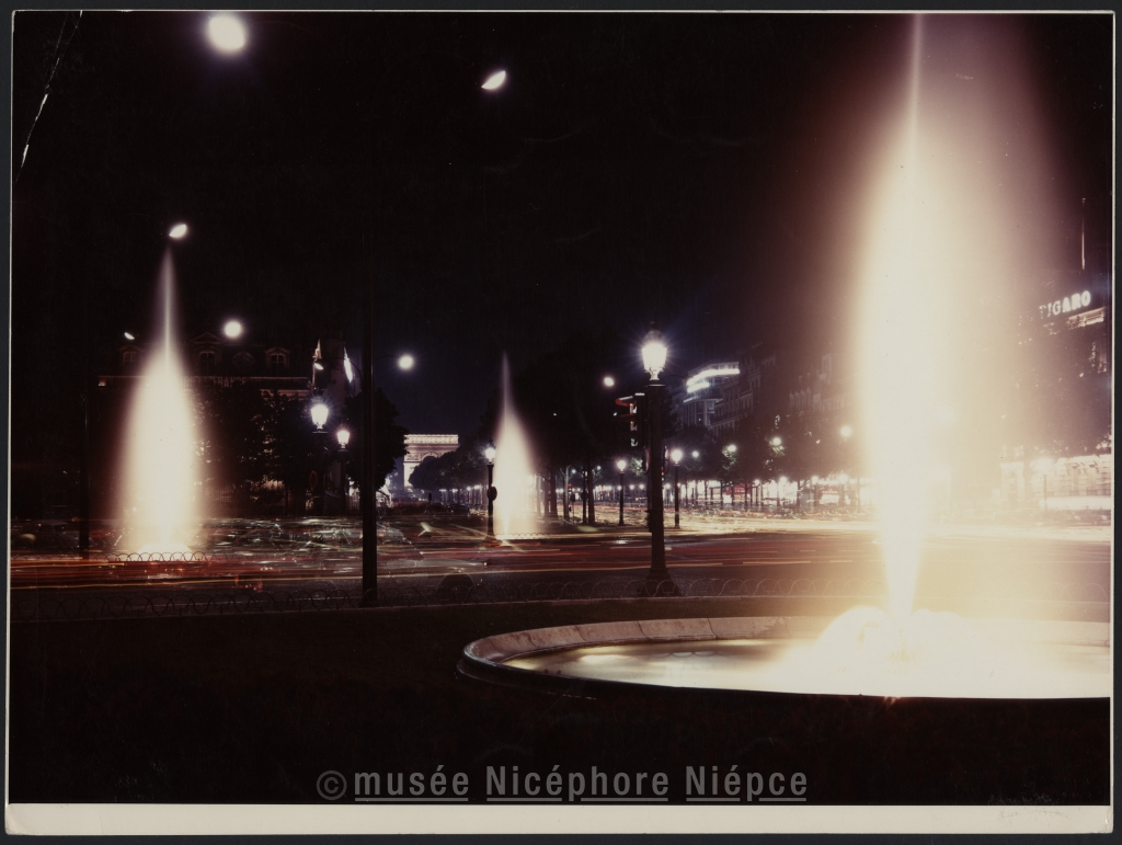 Paris, Champs-Elysées, bassins d'eau la nuit