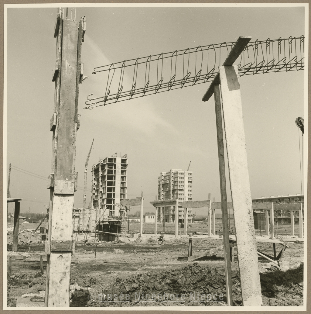 Quartier de l'Aubépin Immeubles B12.02 et B12.01, vus du groupe Scolaire (Filles) 18 mars 1957