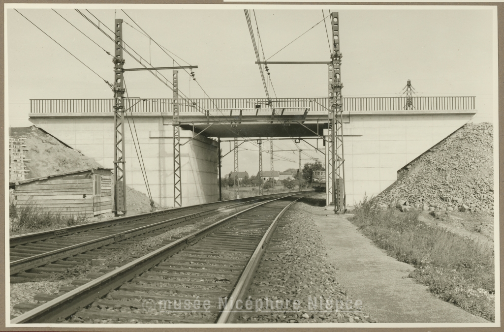 Les nouveaux ponts de la route N6 au dessus de la voie ferrée... à Saint-Rémy Vue prise en direction du Nord Octobre 1957