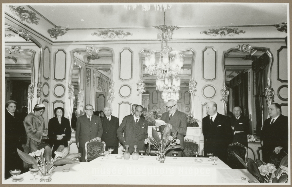 Le 6 Janvier 1953, réception de S.E. le Sardar Pannikar, ambassadeur de l'Inde à Paris, à l'Hôtel de Ville de Chalon par M. Nouelle, maire, assisté de M. Choppin Préfet de S et L., de M. Borgeot, Président du Conseil Général, de M. Devinat, député et de Ch. Gros 1er Adjoint